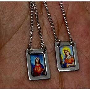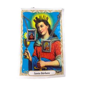 Escapulário Santa Bárbara em Aço Inox com Foto 1,5 x 32cm