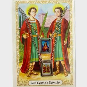 Escapulário São Cosme e Damião Foto em Aço Inox 1,5x 32 Cm