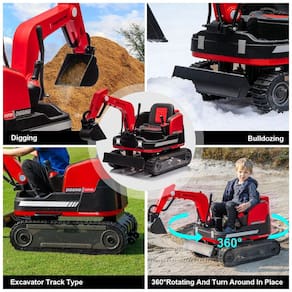 A escavadeira elétrica JOYLDIAS para crianças oferece mobilidade total com rotação de 360° e design patenteado de trilhos, proporcionando excelente aderência e estabilidade em diversos tipos de terreno. O brinquedo combina as funções de escavadeira e buldôzer, equipado com plataforma giratória, controle remoto Bluetooth para operação parental e sistema com três velocidades (2 a 5 km/h). Possui bateria de 12V 12Ah de alta capacidade, iluminação LED, caixa de ferramentas integrada, MP3/USB, funções educacionais e acabamento em PP reforçado com partes metálicas. Ideal para crianças de 3 a 8 anos, suporta até 30 kg, facilitando brincadeiras seguras e criativas em ambientes internos e externos.