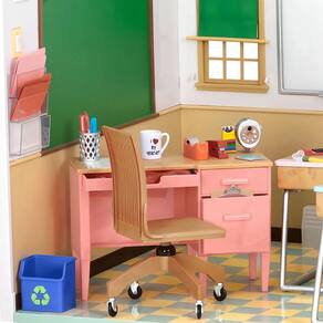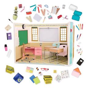 Uma pequena escola para grandes ideias! A Escola Our Generation está pronta para mostrar a você o por que “escola” rima com “legal”! Estamos selecionando os melhores livros e afiando nossos lápis neste playset de sala de aula totalmente abastecido para bonecas de 46cm e, para ser honesta, estamos rindo bastante ao longo do caminho. O que vamos aprender hoje? Seja o que for, com certeza será incrível!Brincar de escolinha nunca foi tão divertido, e a Escola Our Generation tem tudo o que você precisa para construir seu próprio mundo de aprendizado!“Brr-ring, brr-ring!” Toque a campainha para avisar os alunos quando é hora da aula - a campainha realmente funciona! Caminhe pelas clássicas paredes de tijolos vermelhos para encontrar a sala de aula. Sente-se em uma das duas mesas dos alunos. Abra a tampa para obter cadernos, lápis e canetas. Use a folha de presença para verificar quem está presente ou ausente. Para os alunos que se esforçam mais, o professor pode dar um certificado de aproveitamento ou escrever seus nomes na folha de bom comportamento. Use o giz de verdade para escrever as lições no quadro-negro e um apagador para escrever no quadro branco. Acenda as luzes da sala de aula para ter uma visão melhor.As Bonecas OG adoram estudar tantos assuntos diferentes que é difícil escolher apenas um favorito! Você tem uma aula favorita? (Ou talvez duas? Ou três?) Escola Our Generation vem com todos os tipos de material escolar, como apagador, adesivos, canetas, tesouras, post-its e muito mais! Use os armários do corredor para guardar todas as suas coisas quando a escola terminar. Com áreas de lazer dentro e fora da sala de aula, o tamanho desta escola será do tamanho que você imaginar!