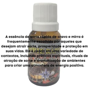 Escolha sua Essência Atrativa Aromatizador e Difusor 15 ml Cor: Sorte Rápida Escolha sua Essência Atrativa Aromatizador e Difusor 15 ml x000D x000d A essência aromática da Amazônia, com suas notas frescas e exuberantes, pode de fato estimular a autoconfiança e proporcionar uma série de benefícios emocionais e mentais. Lembrando sempre que os efeitos dos aromas podem variar de pessoa para pessoa, e é importante usar essas essências de forma segura, respeitando as orientações do fabricante e considerando qualquer alergia ou sensibilidade pessoal.x000d x000d Escolha um Aroma disponíveis na opção COR do próprio anúncio.x000d x000d Enviamos o seu produto em até 24 horas após a confirmação de pagamentox000D x000d Modo de Usar:x000D Difusor de aromas: adicione no seu aromatizador 3 a 4 gotas da essência cada 10 ml de água.x000d x000d Também pode ser adicionado algumas gotas no seu saco de potpourri para exalar o aroma no ambiente. Tem origem na extração de plantas, incluindo flores, folhas, cascas e caules.x000d x000d Caso tenha alguma dúvida nos mande mensagem que respondemos rapidinho para te ajudar da melhor forma possível Marca: Não Informado Ean: 7894135814099