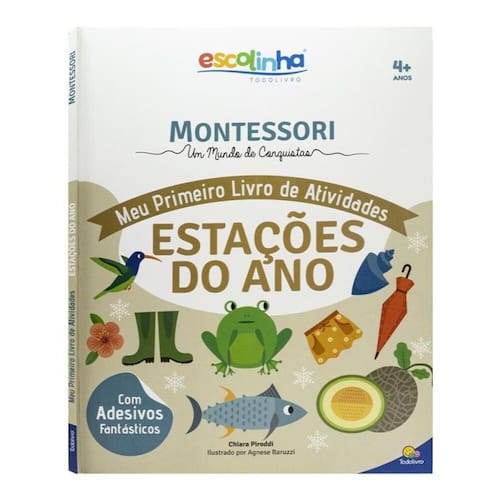 As crianças descobrem a natureza com atividades divertidas e criativas de acordo com o Método Montessori. Este livro está repleto de jogos e atividades criativas e divertidas desenvolvidas de acordo com o método Montessori. Por meio de labirintos, jo gos de pré-escrita, reconhecimento de cores e formatos e adesivos correspondentes, as crianças podem aprender muitas coisas novas e interessantes sobre as estações e suas características diferentes enquanto desenvolvem uas habilidades cognitivas.