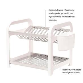 Seu design moderno e formato retangular se destacam, proporcionando um toque de elegância à sua cozinha. Com capacidade para até 12 peças, ele permite que você disponha suas louças para secarem de forma eficiente e organizada.