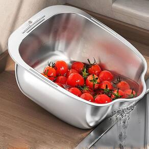 Projetado com um formato inclinado inovador e um gancho embutido, este utensílio de cozinha multifuncional permite escorrer arroz, frutas, legumes, verduras de forma eficiente. E possui um furo, possibilitando pendurá-lo para armazenamento, economizando espaço valioso na bancada e melhorando a organização da cozinha.