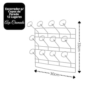 Escorredor de Copo de Parede 12 Lugares Cromado - Araminas