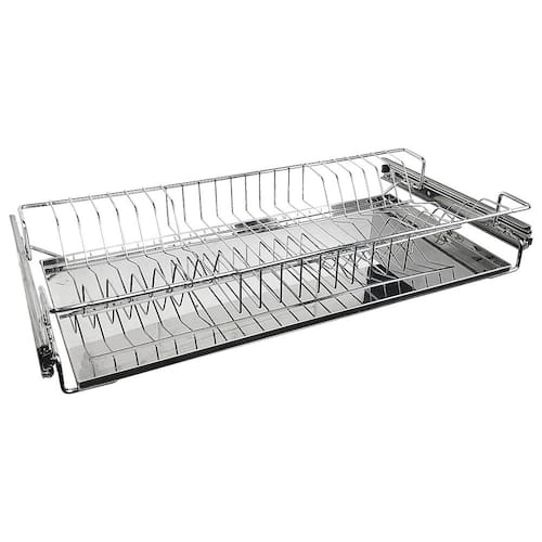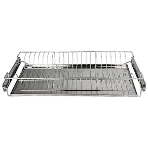 - Código: 8753 - Cromado - Medidas: 570x90x250mm / 57x9x25cm (Largura x Altura x Profundidade) - Material e acabamento: Aço com acabamento cromado - Estrutura interna eficiente: possui espaço para pratos e utensílios como talheres, copos e panelas. - Bandeja coletora de água feita em aço inox 430 — resistente à corrosão e fácil de limpar. - Garantia: 12 meses
