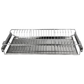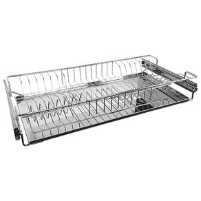 - Código: 8755 - Cromado - Medidas: 770x90x250mm / 77x9x25cm (Largura x Altura x Profundidade) - Material e acabamento: Aço com acabamento cromado - Estrutura interna eficiente: possui espaço para pratos e utensílios como talheres, copos e panelas. - Bandeja coletora de água feita em aço inox 430 — resistente à corrosão e fácil de limpar. - Garantia: 12 meses