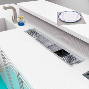 O escorredor de embutir calha úmida 90 cm é a revolução das cozinhas de luxo. É ideal para ser utilizado em cozinhas industriais, profissionais, padarias, lanchonetes e muito mais! É 100% confeccionado em aço inox de alto brilho, proporcionando muito mais durabilidade e resistência ao produto. Possui furo de 1 1/2 e acompanha módulo para esponja/detergente, talheres, copos, pratos grandes e pratos pequenos para disposição das louças;