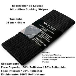 Escorredor De Louça Buettner Microfibra 80% Poliéster/20% Poliamida Cooking Stripes 38cm X 48cm Preto O Escorredor de Louças Microfibra Cooking Stripes Buettner é a escolha ideal para aqueles que procuram praticidade e eficácia ao secar suas louças. Confeccionado em microfibra de alta qualidade, oferece uma absorção eficiente, garantindo que pratos, talheres, copos e outros itens sequem de forma rápida, sem deixar resíduos de água. O seu estilo contemporâneo com listras confere um ar elegante à sua cozinha, enquanto a sua textura suave e macia protege suas louças de danos. O escorredor, por ser leve, resistente e de fácil limpeza, é perfeito para o uso cotidiano, facilitando e organizando a rotina diária. Escorredor de Louça Buettner Microfibra 80% Poliéster/20% Poliamida Cooking Stripes 38cm x 48cm Preto