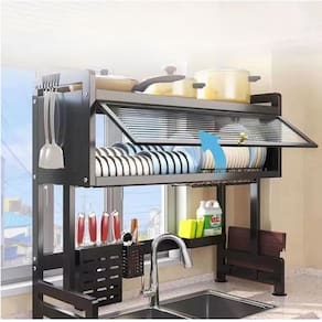 Organize sua pia com o escorredor suspenso de louças: resistente, elegante e com suporte acrílico que evita perfurações!