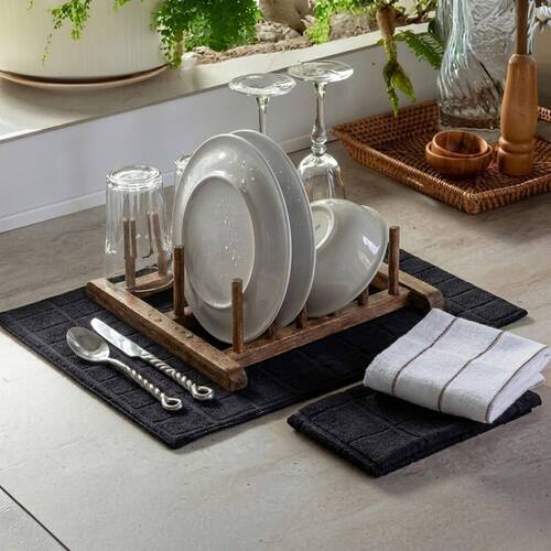 Fabricado em 100% poliéster, o escorredor conta com microfibra de alta qualidade que proporciona excelente absorção de água. Isso permite que seus utensílios sequem mais rapidamente, evitando o acúmulo de umidade e contribuindo para uma cozinha mais higiênica.