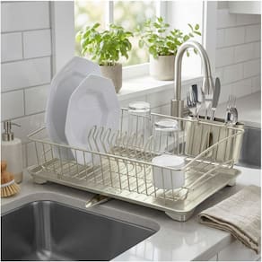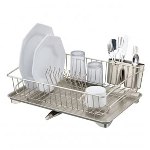 Escorredor de Louça Porta Talheres Prato Copos Com Bandeja Níquel Cozinha