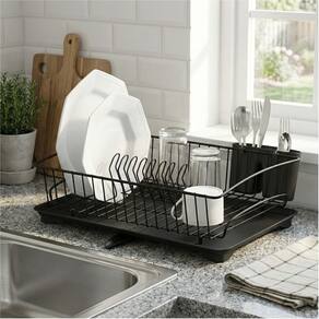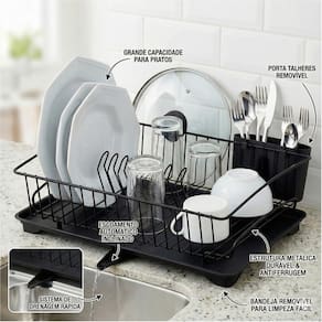 Escorredor de Louça Porta Talheres Prato Copos Com Bandeja Preto Fosco Cozinha