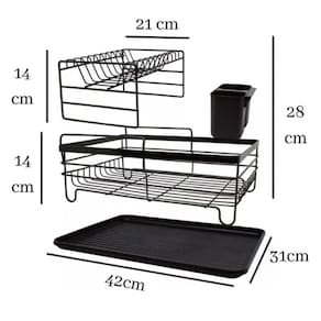 Com design moderno e estrutura compacta, é perfeito para otimizar espaços na bancada ou pia, mantendo tudo organizado. Fabricado em aço com pintura epóxi em pó, oferece alta resistência, durabilidade e acabamento elegante em preto fosco.