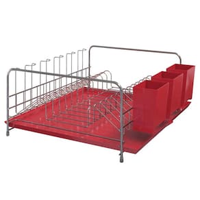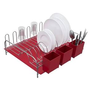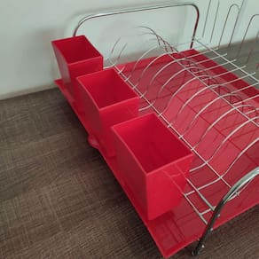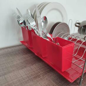 Escorredor De Louça Pratos Com Bandeja E Porta Talheres Pia Vermelho