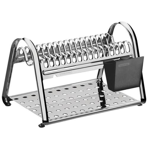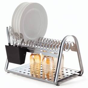 INFORMAÇÕES GERAIS DO ESCORREDOR DE LOUÇA TRAMONTINA EM AÇO INOX - Espessura: 0,8 mm. - Em aço inoxidável, altamente durável, mantém as características , preservando a beleza, a higiene e a durabilidade do material. - Pés de silicone não escorrega e nem arranha as superfícies. - Porta-talheres em plástico, com encaixe no corpo do escorredor, com opção de posição. - Base plana para acomodar copos, xícaras e utensílios diversos. - Capacidade: é possível acomodar 16 pratos.