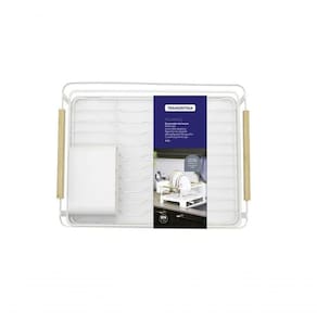 Nos dias mais corridos, cada detalhe conta para facilitar as tarefas da casa. O escorredor de louça Tramontina branco com secador e porta-talheres é um aliado na organização da pia. Compacto, mas com ótimo aproveitamento de espaço, acomoda até 9 pratos, copos e talheres com eficiência. O porta-talheres em polipropileno se encaixa perfeitamente, e as alças laterais oferecem firmeza no manuseio. Sua base inclinada direciona a água diretamente para a bandeja coletora, que escoa para a pia, mantendo a bancada sempre seca. Ideal para quem busca soluções simples que fazem diferença no dia a dia.