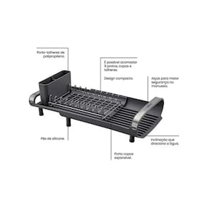 Escorredor De Louça Tramontina Plurale Grafite Inox Apresentando muita praticidade para o seu dia a dia, o Escorredor de Louças Plurale feito em aço inox possui compartimentos para talheres, copos e 9 pratos. O material de sua composição permite maior resistência e durabilidade, mesmo em contato constante com água. Os pés de apoio são produzidos com silicone, para garantir maior segurança às superfícies. Acabamento em alto brilho e design moderno são características que se completam a grande funcionalidade deste item. Lembrando que para manter a beleza e o brilho do produto é recomendada a lavagem somente com detergente e esponja, enxaguando com água quente e secando logo ems eguida, a fim de evitar manchas por substâncias contidas na água - como o cloro, por exemplo Características: Capacidade para 9 pratos Bandeja Retrátil Porta-Talheres Removível Detalhes das Alças em Aço Inox Base e Port-Talheres em Polipropileno Especificações: Marca: Tramontina Modelo: Escorredor de Louças Contém: 01 peça Cor: Grafite Material Presente: Aço Inox e Polipropileno Imagens meramentes Ilustrativas Marca: Não Informado Ean: 7894650565926
