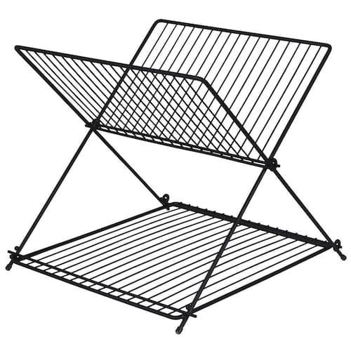 Escorredor de loucas 2 niveis dobravel x preto viena Estrutura de aço carbono, funcional e versatil Dispensa ferramentas Pintura epoxi ou verniz Suporta até 10 kg Ref: 992307 preto Ean: 7896777987513