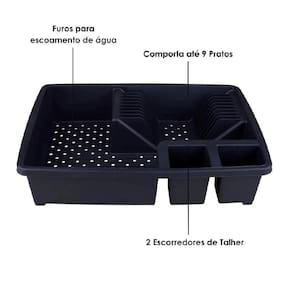 Escorredor de Louças 9 Pratos com Porta Talheres e Copos Preto Organização e Praticidade para Sua Cozinha