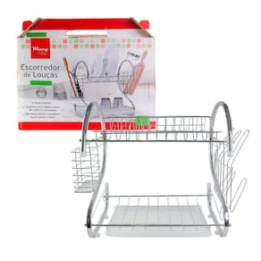 O aliado perfeito para manter sua cozinha organizada e suas louças secas de forma eficiente, esse escorredor de louças será uma ótima aquisição!Com um design inteligente e funcional, este escorredor conta com suporte para copos e cestos de talheres removíveis, oferecendo versatilidade para se adaptar às suas necessidades, além de possuir uma bandeja plástica removível para escoar a água, mantendo sua bancada limpa e seca após a lavagem.Seu design elegante e moderno completa qualquer estilo de cozinha, com 2 andares possui um ótimo espaço para armazenar a louça, além de possui 2 andares, adicionando um toque de sofisticação ao ambiente.Feito em aço inoxidável de alta qualidade, o escorredor é resistente, durável e fácil de limpar, podendo usar por anos sem preocupações. -Espaço das divisões: 2,5cm -Suporte para Talher: Lar ESPECIFICAÇÕES:Material: Aço InoxidávelDimensões:-Escorredor: Alt.: 33cm x Larg.: 36cm x Profundidade: 23cm-Espaço das divisões: 2,5cm -Suporte para Talher: Larg.: 13cm x Comprimento: 11cm x Profundidade: 5cm-Suporte para Copos: Larg.: 19cm x Comprimento: 20cm-Bandeja para escoar água: Larg.: 25cm x Prof.: 20cmPeso: Aprox.: 850g CONTÉM:01 ESCORREDOR DE LOUÇAS DE AÇO INOX