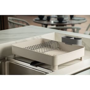 O Escorredor de Louças da Linha Liv foi pensado para deixar a rotina na cozinha mais funcional e higiênica. Possui capacidade para até 12 pratos, além de espaço para copos, jarras e outros utensílios, mantendo tudo bem acomodado. Conta com direcionador de água ajustável que conduz a água diretamente para a cuba, evitando acúmulos na bancada e mantendo a pia sempre seca. O escorredor de talheres é modular, podendo ser posicionado conforme a necessidade, e possui fundo removível, facilitando a limpeza e garantindo ainda mais praticidade no uso diário.