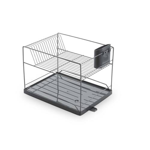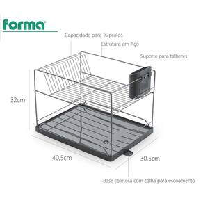 Escorredor Duplo Dry C/ Bandeja 30,5 X 40,5 X 32 CM - Cinza ou Preto - Forma Utilidades