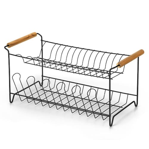 Toda a sua louça tem lugar garantido e a sua cozinha fica muito mais organizada. O Escorredor de Louças Duplo Eco Black Arthi possui uma parte superior, perfeita para pratos de diferentes tamanhos e uma base reta especialmente desenhada para acomodar com segurança copos, xícaras e demais itens. O produto inclui, ainda, um porta-talheres em plástico que pode ser facilmente encaixado no corpo do escorredor.