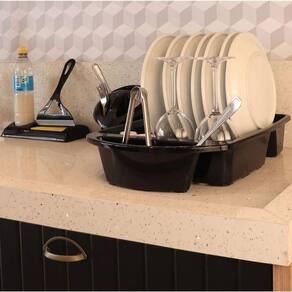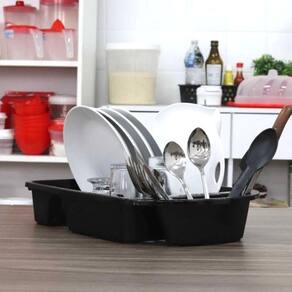 Escorredor De Louças Para Pratos Copos Talheres - Preto Escorredor de Louças Para Pratos Copos Talheres - Preto O escorredor de louça traz toda a praticidade e organização que você precisa, além de otimizar seu tempo nas tarefas domésticas, já que permite que as louças sequem sozinhas durante o dia. Conta com 09 divisórias para guardar seus pratos, um espaço para talheres, um espaço principal maior onde você pode colocar as panelas, potes, dentre outros utensílios e, um espaço para os copos. O item foi totalmente desenvolvido em material resistente e duradouro. Design compacto que permite o armazenamento em qualquer ambiente de sua cozinha. Contém furos para permitir que a água escorra. Um item que proporciona funcionalidade, otimizando seu espaço e seu tempo.