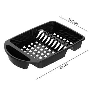Material: Plástico Dimensões: Comprimento : 43cm X Larg.: 31,5cm x Alt.: 8cm. Peso: 235g aprox. Cor: Preto CONTÉM: 01 ESCORREDOR DE LOUÇAS PRETO