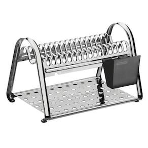Elegância até na hora de deixar a louça secando com o Escorredor de Louça Tramontina em Aço Inox com Porta Talheres.