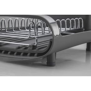 • Ideal para cozinhas pequenas onde há pouco espaço na bancada. • Pés de silicone, não escorrega nem arranha as superfícies. • Porta-talheres de polipropileno, com encaixe no corpo do escorredor. • Capacidade: é possível acomodar 9 pratos, copos e talheres. • Porta copos expansível. • Alças para maior segurança no manuseio. • Design compacto. • Dispõe de uma inclinação que direciona a água que escorre da louça na bandeja coletora, fazendo com que ela caia de modo direto na pia, deixando seu ambiente sempre seco e limpo.