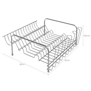 Garantia: 90 dias / Peso: 525g / Cor predominante: cromado / Ref.: 97606; Dimensões totais: 32cm (C) x 39cm (L) x 13,5cm (A); Área para talheres: 29,5cm (C) x 8cm (L) x 5,5cm (A); Espaço entre pratos: 2cm; Capacidade: 13 pratos, 5 copos e talheres; Materiais: aço carbono cromado e polipropileno; Conteúdo: 1 escorredor de louças com porta copos; Obs.: possui pés antiderrapantes em polipropileno, não removíveis.