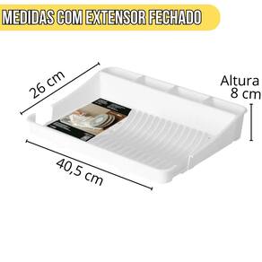 Escorredor de Louças Pratos Com Extensor 40x40x8 Fly Branco Transforme sua rotina na cozinha com praticidade e estilo O Escorredor de Pratos com Extensor é perfeito para otimizar o espaço e facilitar o secamento da louça. Seu design moderno e funcional garante mais organização, enquanto o extensor ajustável se adapta a diferentes tamanhos de pratos, oferecendo maior capacidade e eficiência