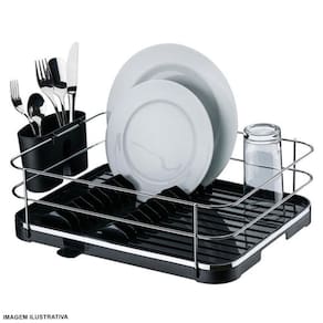 O Escorredor de Louças Preto Future possui bico fixo para vazão da água. Você direciona essa saída de água para dentro da cuba e a pia fica sempre seca. Tem capacidade para 12 pratos e um porta talher removível, que pode ser posicionado onde for mais conveniente. É fabricado em plástico e aço carbono, com detalhe em aço piatina cromado (aço em formato achatado). Atenção: o bico é fixo e imóvel, de modo que não é possível trocar de lugar ou fechar o mesmo. Além do tradicional tratamento superficial da Future - onde são aplicadas até 4 camadas de metal - os produtos são revestidos com uma camada extra do protetivo especial Rust Free, garantindo cores vivas e brilhantes, além de maior resistência contra ferrugem.