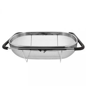 Escorredor de Macarrão fabricado em aço inox de alta qualidade, desenvolvido para ter alta performance sobre a pia.Possui um cesto coletor tipo peneira de malha fina e alças de borracha extensível.As alças deste Escorredor de Macarrão se expandem até a medida de 55 cm para descansar sobre a pia.As alças possuem borrachas macias para dar conforto e evitar riscos na pia.Assim você pode enxaguar e drenar os alimentos diretamente sobre a pia.O produto serve para lavar diversos vegetais e frutas e também como fruteira de mesa.Especificações:Peso aproximado: 580 g.Dimensões: 35 cm Largura X 24 cm Profundidade X 9 cm Altura.Extensível até 55 cm.Material:Aço Inox.Conteúdo:01 Escorredor de MacarrãoCuidados Especiais:Antes de utilizar o produto pela primeira vez, lave-o.Para limpeza, utilize apenas água, esponja macia, sabão ou detergente neutro. Nunca use produtos abrasivos, palhas de aço ou objetos pontiagudos.Pode ir na maquina de lavar louças. Marca: Não Informado