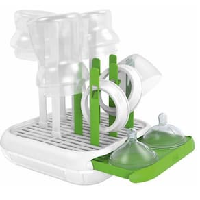 o escorredor de biberões é a solução ideal para guardar e escorrer biberões e outros acessórios do bebé após a lavagem. possui uma gaveta interna que adapta-se perfeitamente a todos os espaços da cozinha, permitindo duplicar ou reduzir a superfície de apoio para os produtos. a hastes incluídas apresentam 2 combinações de cores, formas e alturas diferentes para ajudar na disposição dos produtos: