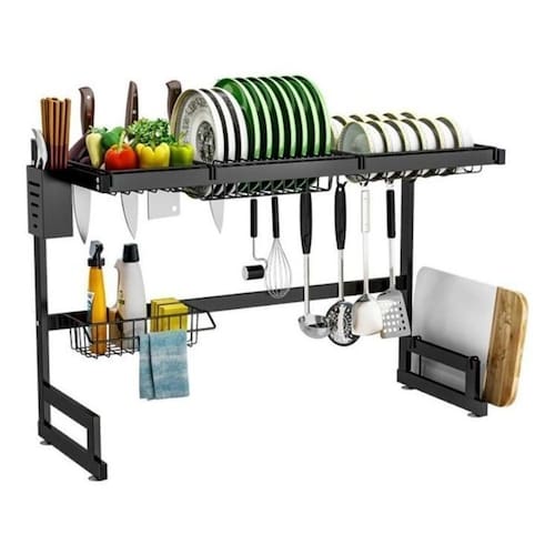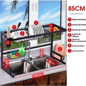 Escorredor de Pia Preto com Prateleira Organizador de Louça 85cm Casambiente