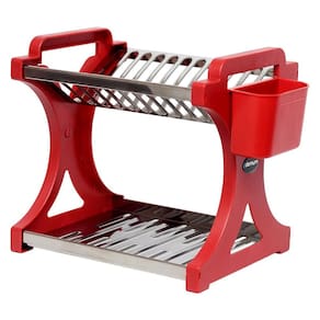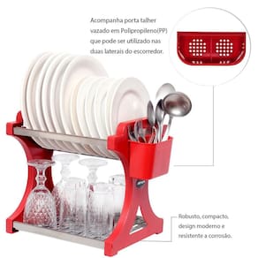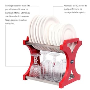 Escorredor De Pratos Alto Inox 12 Pratos Cor: Vermelho Escorredor De Pratos Alto Inox 12 Pratos