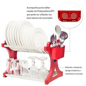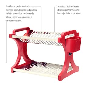 Escorredor De Pratos Alto Vermelho Inox 16 Pratos