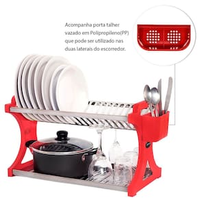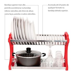 Escorredor De Pratos Alto Vermelho Inox 20 Pratos Cor: Vermelho Escorredor De Pratos Alto Vermelho Inox 20 Pratos