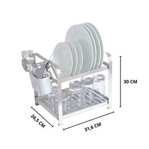 Feito em Inox e Plástico PP, esse escorredor é durável e resistente. Sua cor branca proporciona um toque de elegância para sua cozinha. Com medidas de aproximadamente 30 cm de altura, 26,5 cm de largura e 31,5 cm de comprimento, é compacto e fácil de ser armazenado. Acompanha 01 porta talheres.
