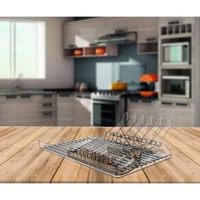 Garantia: 90 dias / Peso: 810g / Cor: transparente / Referência: 403073002; Dimensões: 44cm (C) x 28cm (L) x 14cm (A); Capacidade: pratos, talheres, copos e louças; Conteúdo: 1 escorredor de pratos; Material: poliestireno