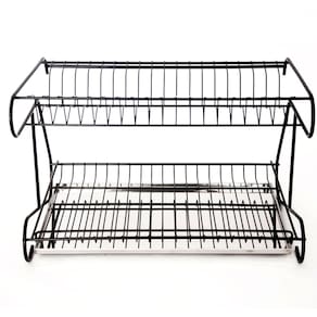 Escorredor Euro Cód. 2449 Medidas: 450x285x310mm Características: Uso Fixado, Em Barra Ou Apoiado Em Bancada Material: Aço Carbono Acabamento: Pintura Preta Capacidade: 12 Pratos Insumos Que Acompanham: 01 Bandeja Inox 02 Presilhas Plásticas Para Fixação Garantia: 12 Meses