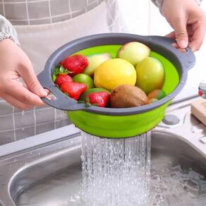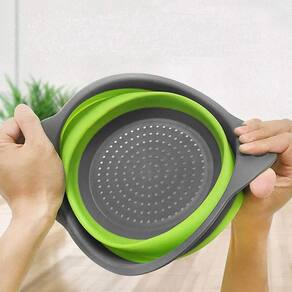 - Fabricado em Silicone Flexivel - Facil de guardar - Otimiza Espaço - Multiuso, Escorra e lave macarrão, arroz, frutas, legumes, verduras, etc - Dúravel e resistente - Medidas: 9x29x23,5 AXLXC