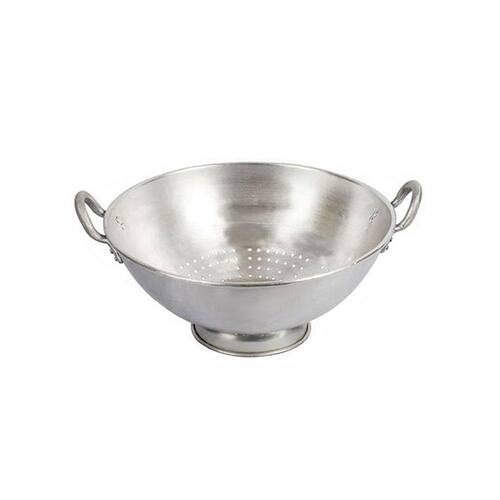 Escorredor industrial de alumínio reforçado com diâmetro de boca de 48cm com alça de alumínio de vergalhão, com capacidade de 21 litros. Ideal para uso em cozinha industrial para linhas hoteleiras em grande escala.