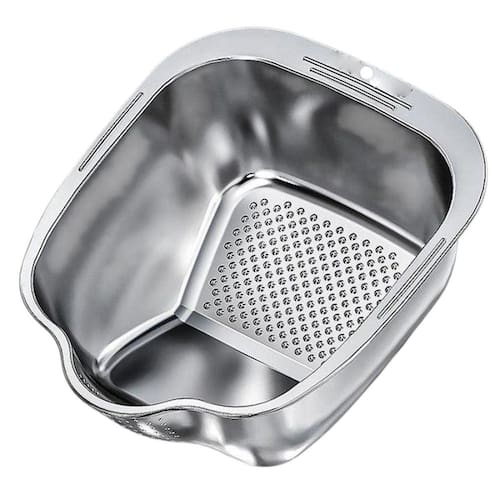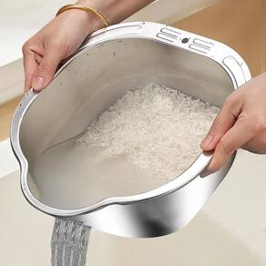 Projetado com um formato inclinado inovador e um gancho embutido, este utensílio de cozinha multifuncional permite escorrer arroz, frutas, legumes, verduras de forma eficiente. E possui um furo, possibilitando pendurá-lo para armazenamento, economizando espaço valioso na bancada e melhorando a organização da cozinha.