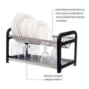 O Escorredor de Pratos Inox Preto com Porta Talheres é a opção perfeita para quem busca sofisticação e praticidade na hora de organizar a cozinha. Com capacidade para 20 pratos no nível superior, este escorredor é produzido em aço inoxidável 430 resistente à oxidação, garantindo maior durabilidade e evitando pontos de oxidação em ambientes agressivos, como regiões com maresia.