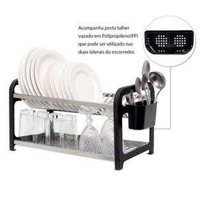 Escorredor de Pratos Inox Preto com Porta Talheres - Alta Durabilidade