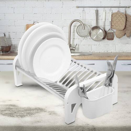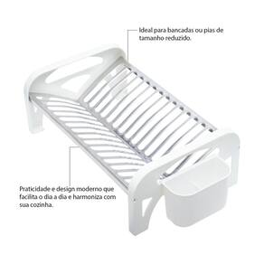 Com capacidade para acomodar até 12 pratos, o escorredor também possui um suporte para talheres que pode ser utilizado nas duas extremidades, proporcionando ainda mais praticidade e organização. Além disso, suas dimensões compactas - altura de 15cm, largura de 26cm e comprimento de 41,5cm - o tornam perfeito para bancadas ou pias de tamanho reduzido.